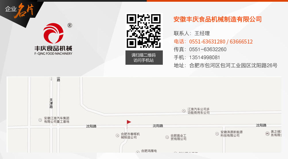 安徽豐慶食品機械制造有限公司位于美麗的科教之城—合肥,高速公路網四通八達、滬-合-武高速鐵路穿城而過,至南京不到一小時,至上海不到三小時,交通十分便利。   安徽豐慶食品機械制造有限公司是一家以面點、糕點、餅類等烘焙類食品機械的研發、生產、銷售為一體的現代化企業,產品集智能化,機電氣一體化為一身。公司匯聚一批具有豐富行業經驗的專業人才,高端項目與中國科學技術大學攜手合作,憑借先進的經營理念和技術優勢,不斷提升企業的技術水準和加工檔次,增強了企業的市場競爭力和綜合實力。過硬的產品質量和完善的售后服務使產品銷往國內三十一個省、市、自治區,并遠銷南亞、非洲、中東、東南亞、歐美等多個國家和地區,深受國內外廣大客商的贊譽。   公司秉承“誠信、團隊、服務”的經營理念,為客戶源源不斷地提供高新技術產品及優良的服務是豐...
